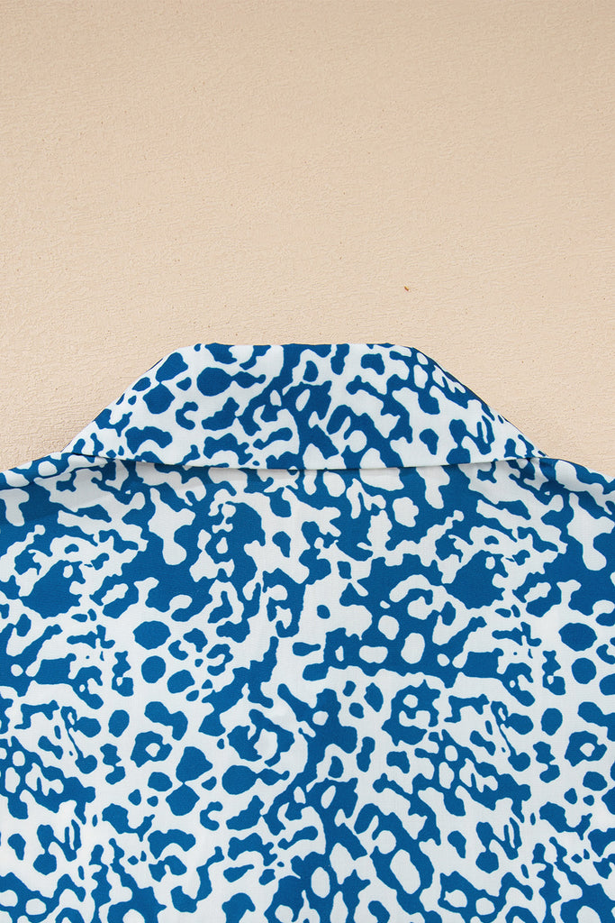 Sky Blue Leopard Striped Western Casual Shirt