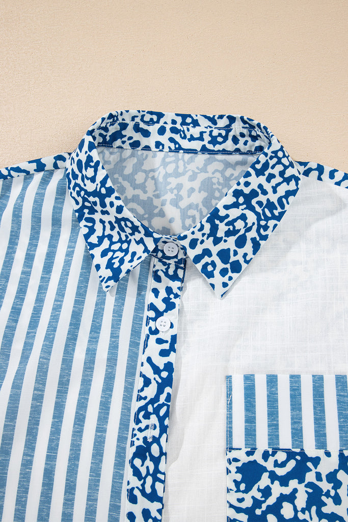 • A stylish leopard stripe patchwork shirt for women.